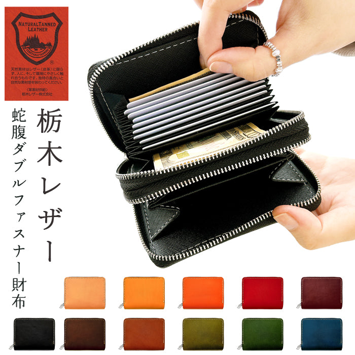 【財布の百貨店公式】 蛇腹 ダブルファスナー 財布 本革 イタリア産 ダグラスレザー カード収納 ミニ財布 小さい財布 使いやすい 牛革 革財布 ラウンド型財布 【安心の返品保証付き】