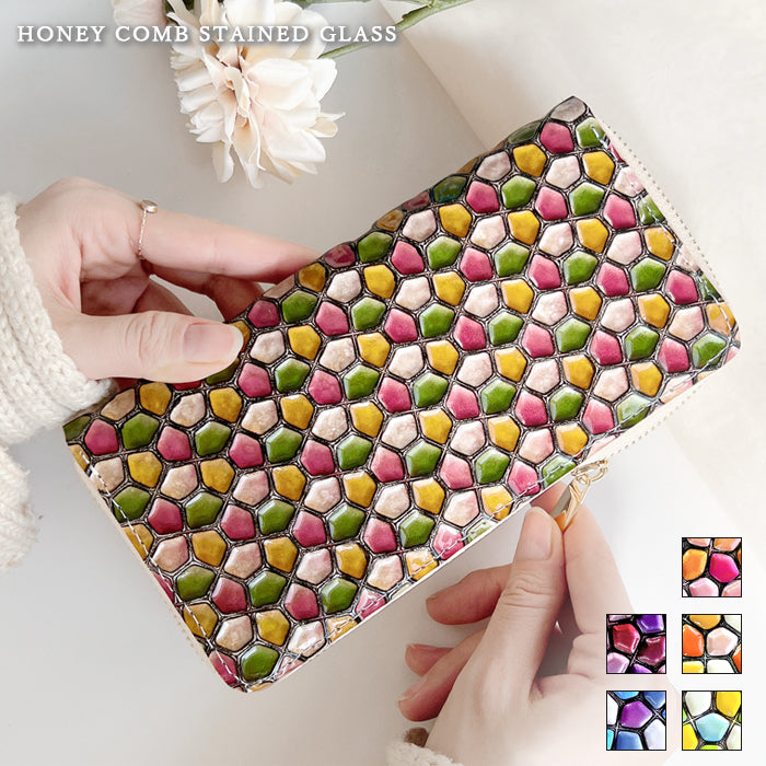 【財布の百貨店公式】 長財布 ちょっと上品なステンドグラス 財布 本革 レディース ステンドグラス風 ラウンド型ファスナー | まるでステンドグラスのような美しい長財布 【安心の返品保証付き】