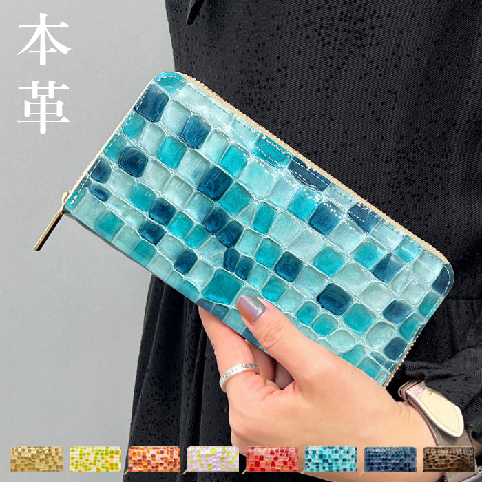 【財布の百貨店公式】 本革 ラメフラワー型押し 蛇腹 カードポケット付き 財布 長財布 ラウンド型ファスナー レディース 大容量 【安心の返品保証付き】